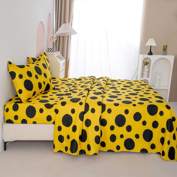 HOOBUY Soft Microfiber Printed Bed Sheets Set,All Seasons Bedding 4-Piece,Includes Floral Patterned Flat Sheet,Fitted Sheet with Elastic Deep Pocket&2 Pillowcases (DC, Full)