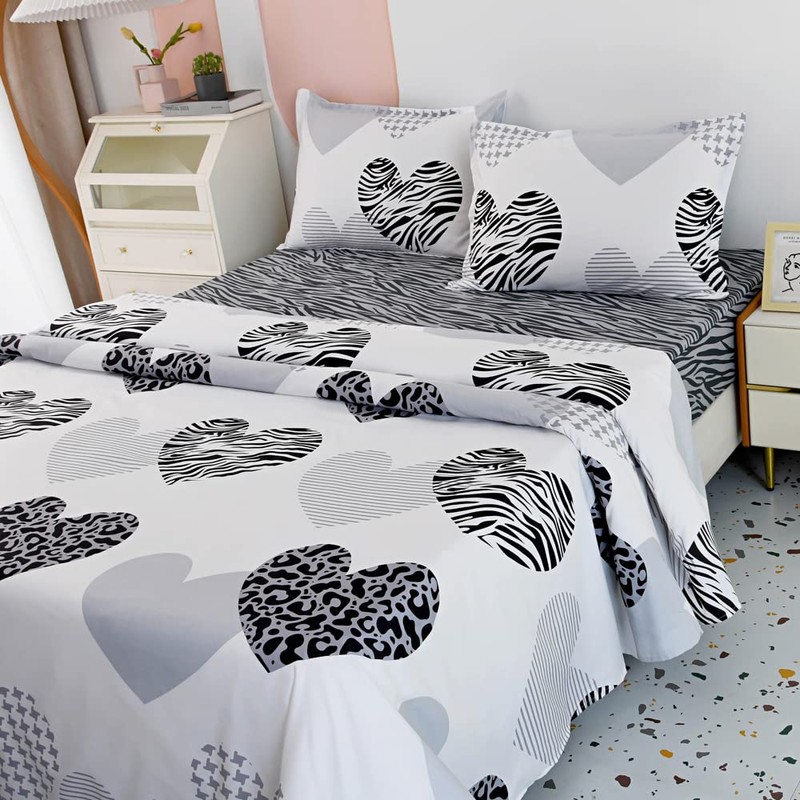 HOOBUY Soft Microfiber Printed Bed Sheets Set,All Seasons Bedding 4-Piece,Includes Floral Patterned Flat Sheet,Fitted Sheet with Elastic Deep Pocket&2 Pillowcases (XL, Full)