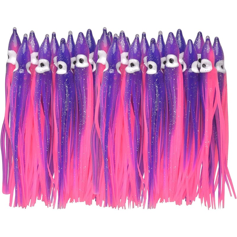 Hoochie Octopus Skirts Lure,30pieces Soft Plastic Squid Lure Trolling Bait Jig Artificial Fishing Lure for Saltwater Bass Salmon Trout Purple 7CM