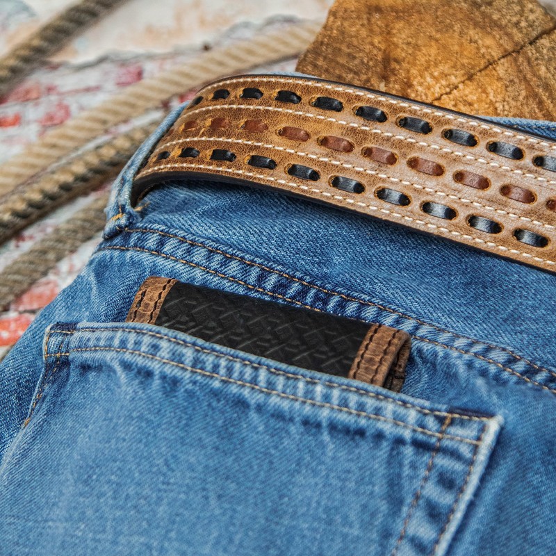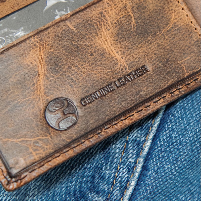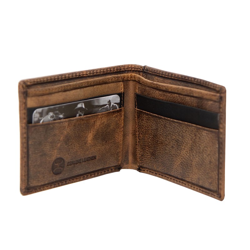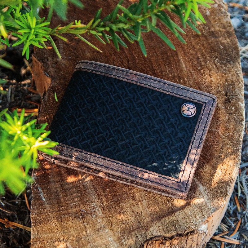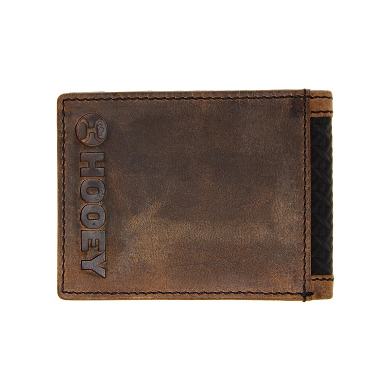 HOOEY Bi-Fold Leather Men's Wallet, Hands Up Basket Weave - Brown, Classic