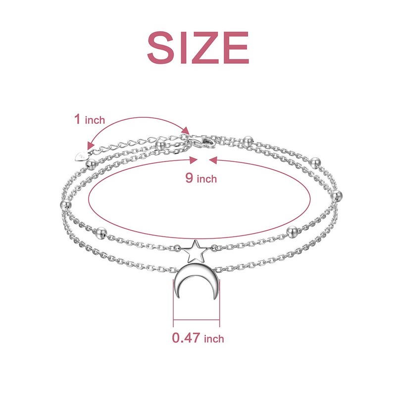 - Package contents: Exquisite gift packaging: Gift Box + Silver Polishing Cloth Simply send her gifts directly and confidently. What a wonderful way to celebrate summer with this silver crescent moon anklet for women.