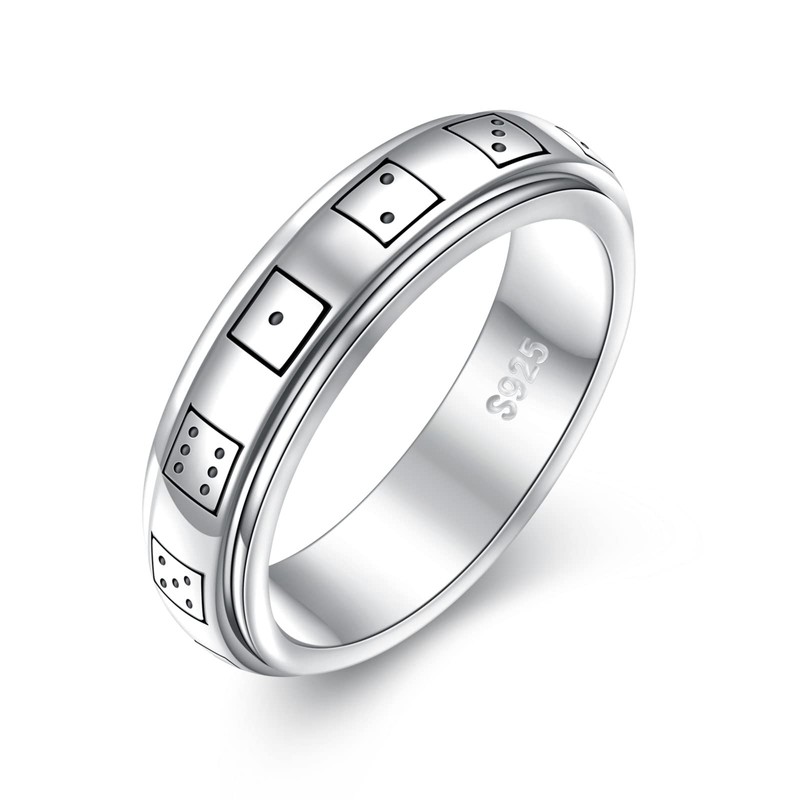HOOHWE Spinner Rings for Anxiety,S925 Sterling Silver Fidget Anxiety Worry Relieving Boredom ADHD Autism Band Rings for Teen Girls (7.Dice Rings, 9)