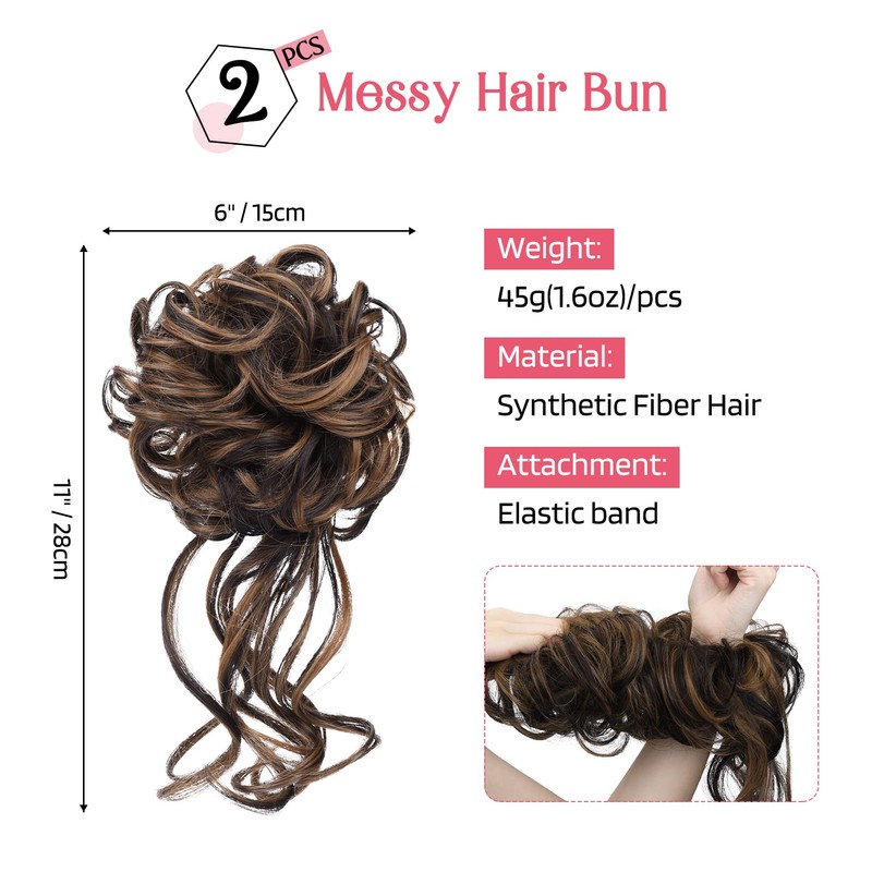 - [Pack of 2PCS] Comes with 2PCS tousled updo. The bun set meets all your need in various occasions, such as wedding, party, and daily use with double bun, half bun, top bun and low bun