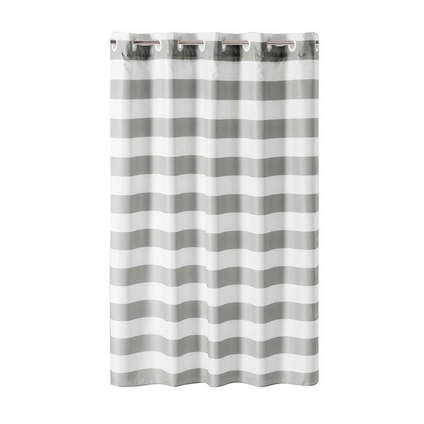 Hookless Cabana Stripe Shower Curtain with Peva Liner, 71 in x 74 in, Grey