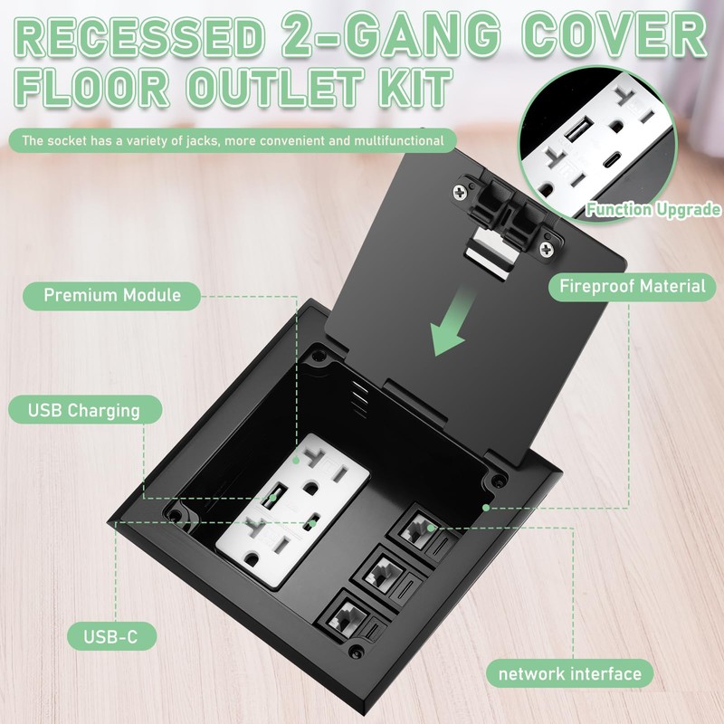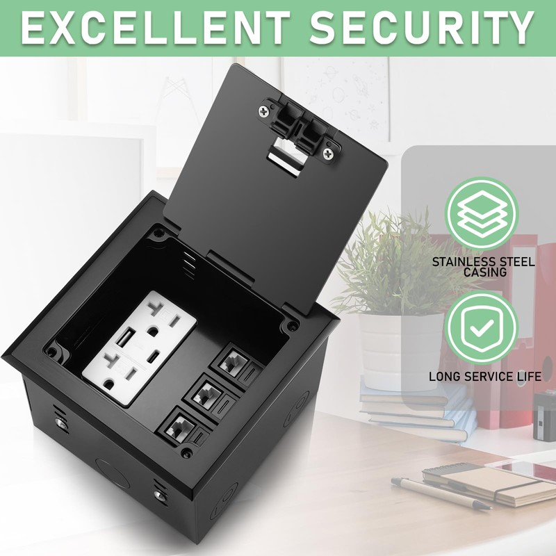 - Wide Application: the recessed floor outlet with USB ports is ideal for installation in hardwood, carpet, or tile flooring applications, as well as granite or marble kitchen countertops, tables, or other locations in residential or commercial environments; It won't take up much space and helps keep your area tidy
