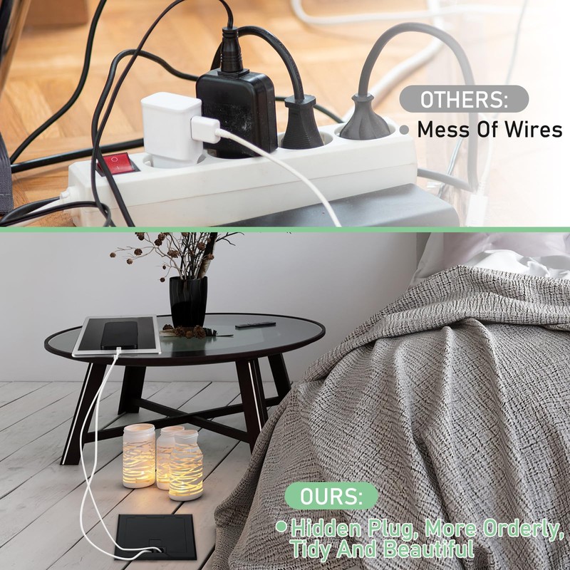 - Easy to Use: this recessed outlet is convenient to use; When you need power, simply tap the hidden handle, lift the panel, and connect to the power outlet for charging; When not in use, it can be concealed in the floor or countertop, helping you say goodbye to messy cables