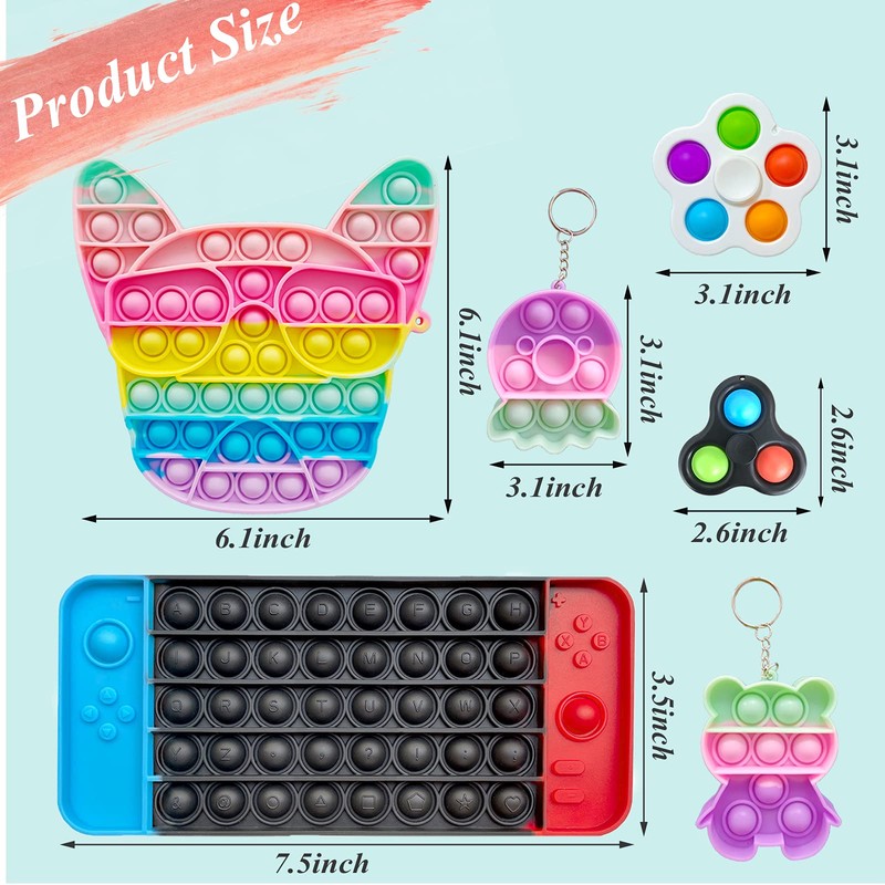 - 【Washable & Endlessly Reusable】This fidget pop toy pack use durable and long-lasting material, you can easily wash and wipe the pop bubble fidget toys. You can endlessly resuse and play games with the fidget toys for a very long time. These fidget toys are great to share with your family and friends.