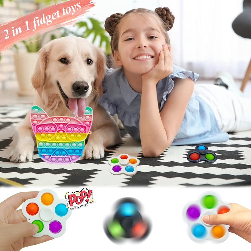 - 【Relieve Stress and Anxiety】You can just use fidget toys set to play, squeeze, stretch and flip to reduce stress and anxiety. This fidget toy set includes: 2 x Pop Fidget Toys, 2 x pop Fidget Keychain, 2 x Pop Fidget Spinners. Each fidget pop toy helps release and relieve stress and kill time.