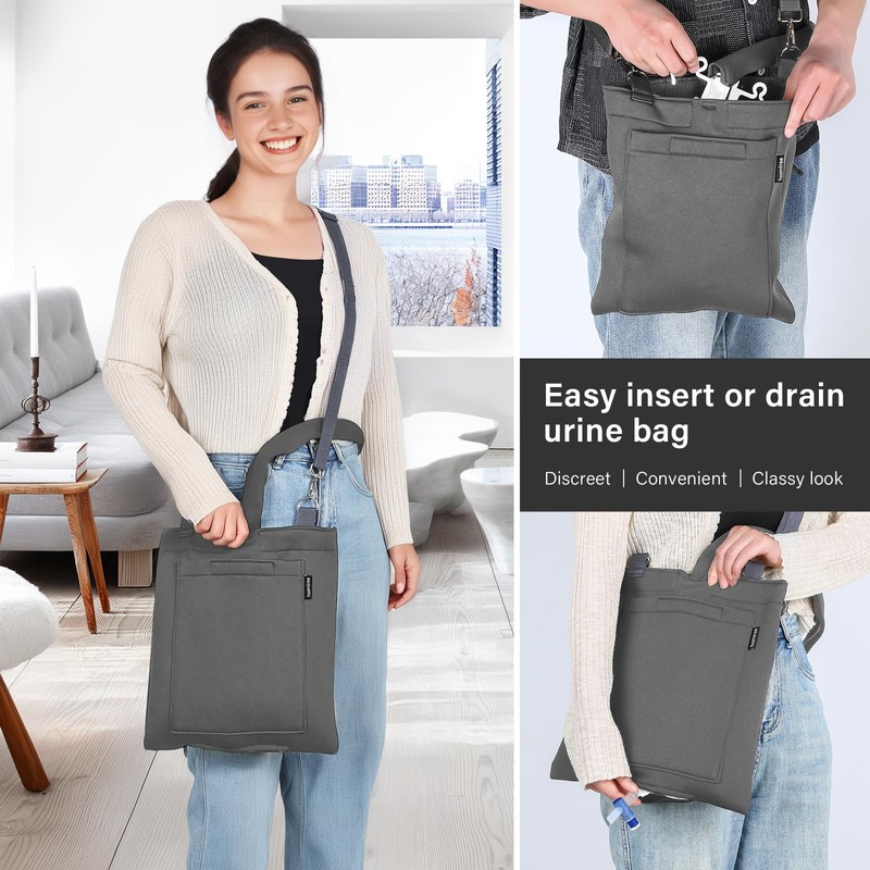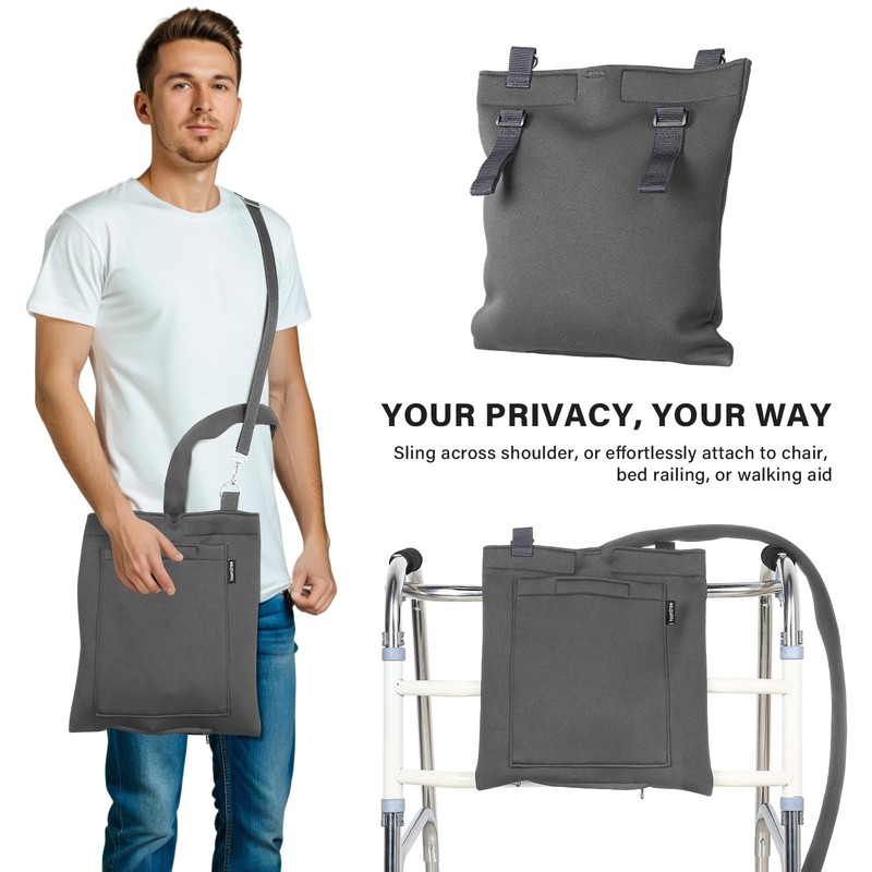 - 【Versatile and Functional】: The adjustable strap design allows you to hang it on your shoulder, across your body, carry it in your hand. Remove the strap if needed. Back Straps design make easy hanging on beds, walkers or anywhere else that catheter users need to discreetly store a urine or collection bag. Additionally, the urine bag holder boasts a specially velco bag on the outside to hold and organize the small items making it a practical and multi-functional accessory