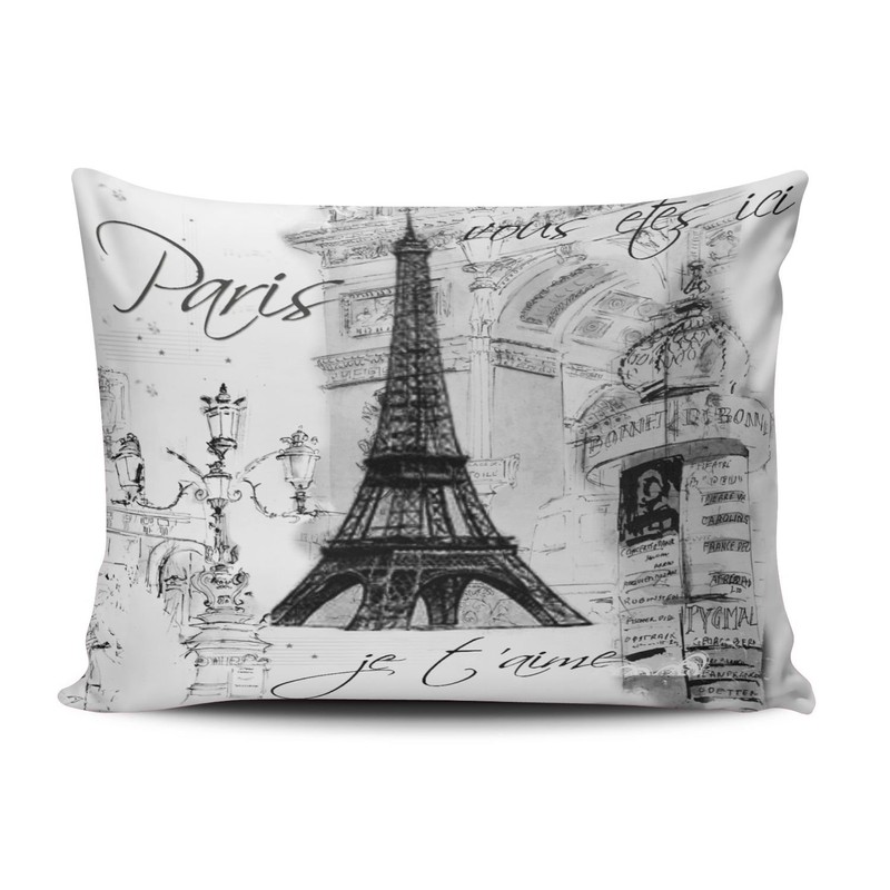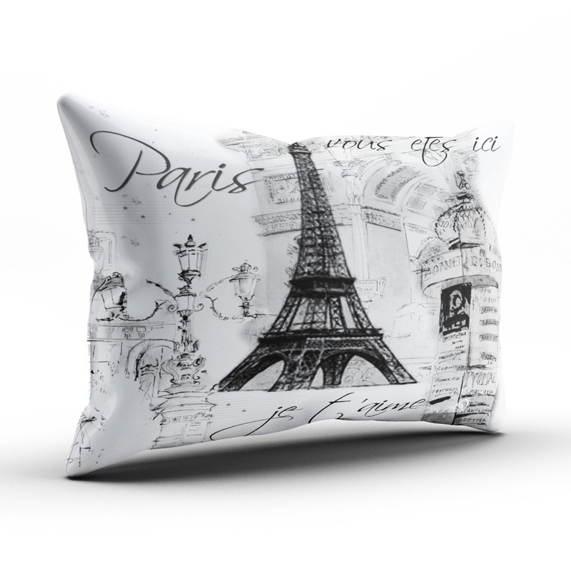 Hoooottle Custom Hot Romantic Black White Paris Eiffel Tower Collage Standard Pillowcase Rectangle Zippered One Side Printed 20x26 Inches Throw Pillow Case Cushion Cover