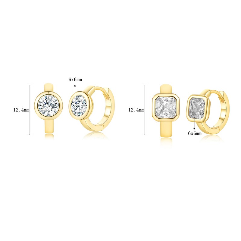 Hoop Earrings Set for Women 18K Yellow Gold Plated Modern Classic Round and Square Cubic Zirconia Huggie Earrings Pack of 2 Pairs