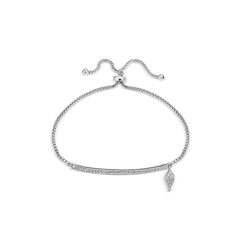 Esta hermosa pulsera ajustable cuenta con una barra con circonitas cúbicas y un colgante de circonita cúbica. Esta pulsera es altamente pulida y se ajusta hasta 25,4 cm de largo.