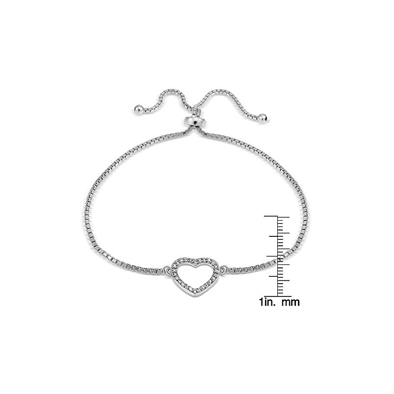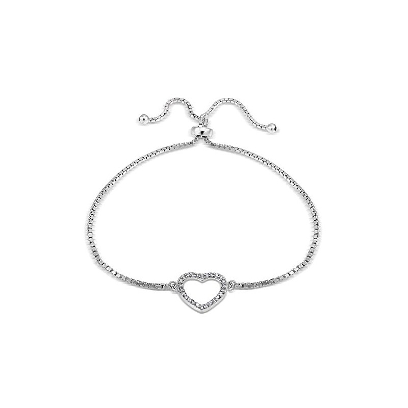Hoops & Loops - Pulsera Ajustable de Plata de Ley con circonita cúbica y corazón Abierto