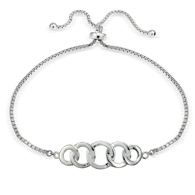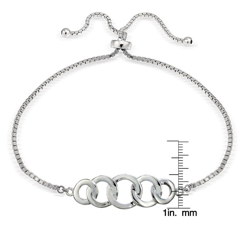 Hoops & Loops - Pulsera Ajustable de Plata de Ley con círculos entrelazados pulidos