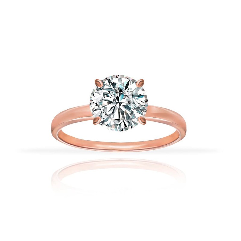 Hoops & Loops Rose Gold Flashed 925 Sterling Silver 3.0ct Round Brilliant Cut Cubic Zirconia Solitaire Engagement Bridal Wedding Statement Band Ring for Women, Size 8
