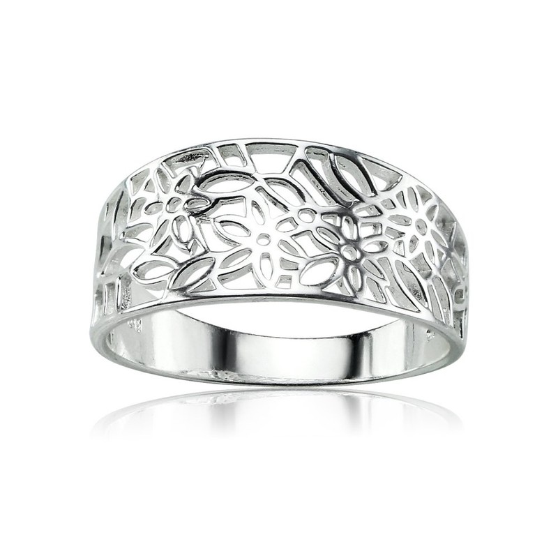 Hoops & Loops Sterling Silver Polished Filigree Flower Ring, Size 9