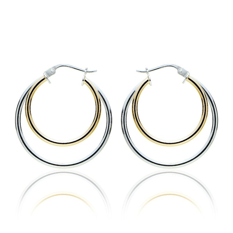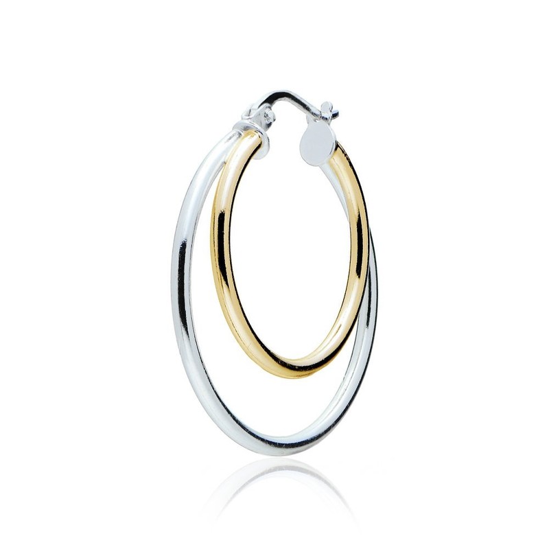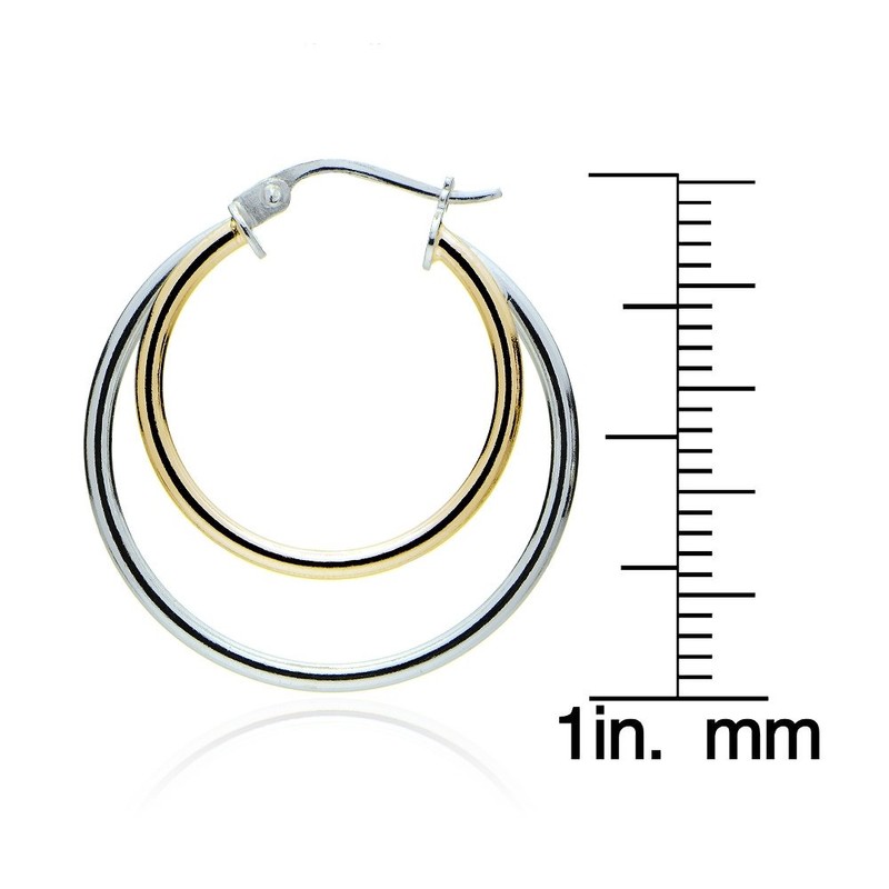 Hoops & Loops Sterling Silver Two-Tone Double Circle Round-Tube Polished Hoop Earrings, 25mm