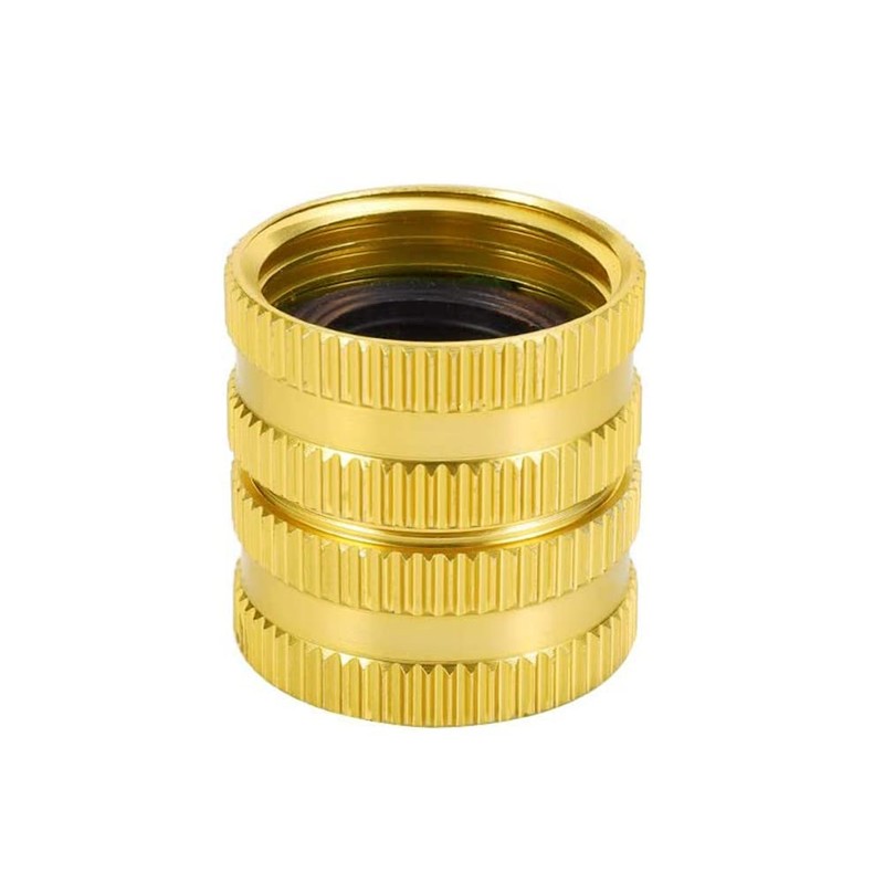 Hooshing 3/4" GHT Female to Female Garden Hose Connector Solid Brass Double Female Swivel Hose Connector Adapter, 2 Pack