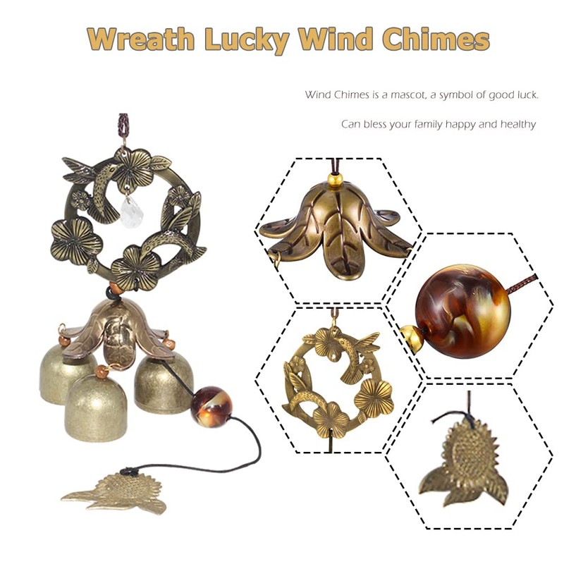 Hooshing Corona de viento Campanas de viento Actualizando Hojas Feng Shui Campanas de viento Clásico Metal Campanas para Lucky Home Jardín Patio Colgando Pequeña Decoración Regalo