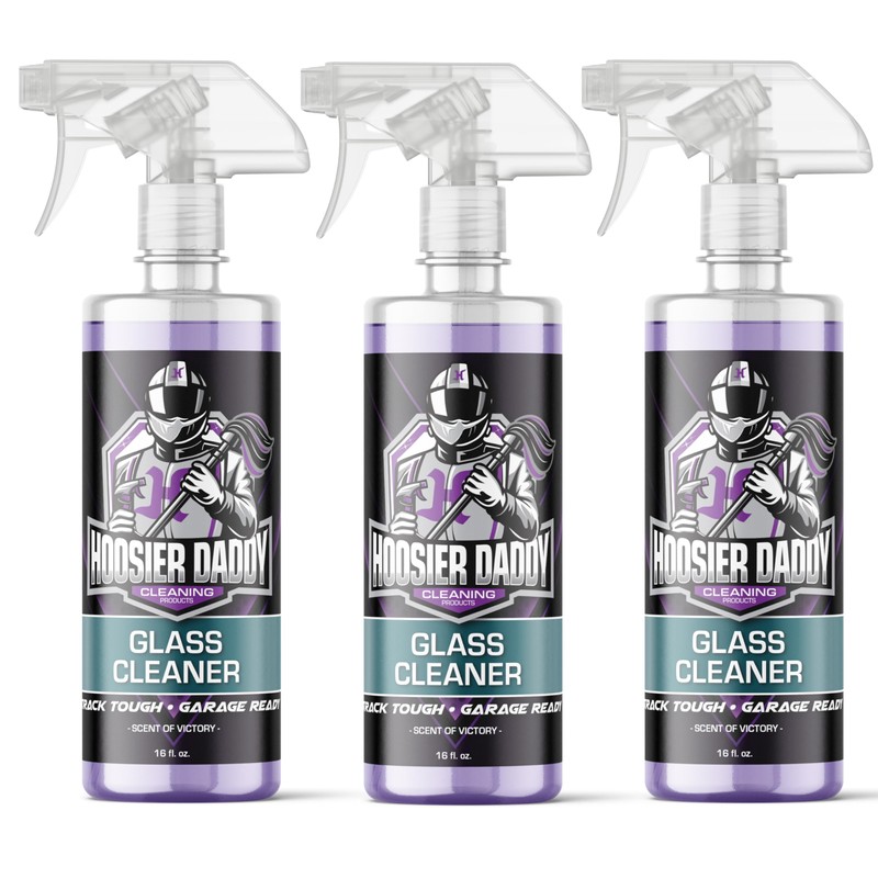 Hoosier Daddy 16oz Glass Cleaner - Streak-Free Formula for Crystal Clear Windows, Mirrors, and Glass Surfaces, Easy Spray Application for Multi-Use on Cars, Trucks, SUV, House, and More(3-Pack)