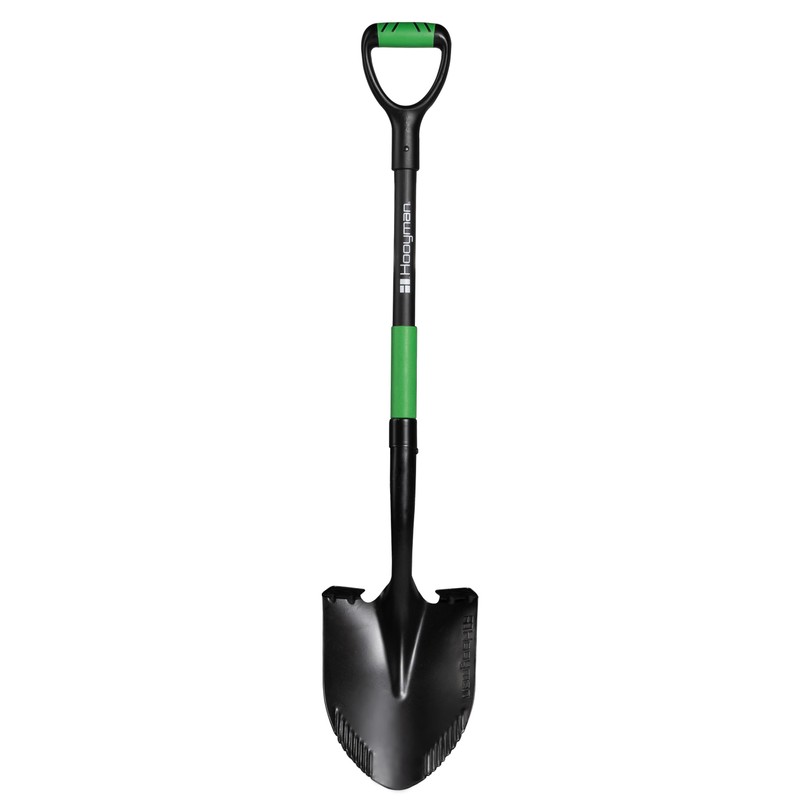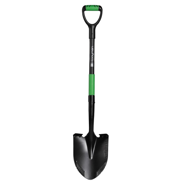 Hooyman Short Handle Digging Shovel with Heavy Duty Carbon Steel Construction, Ergonomic No-Slip H-Grip, D Handle, and Oversized Steps for Gardening, Land Management, Yardwork, Farming, and Outdoors