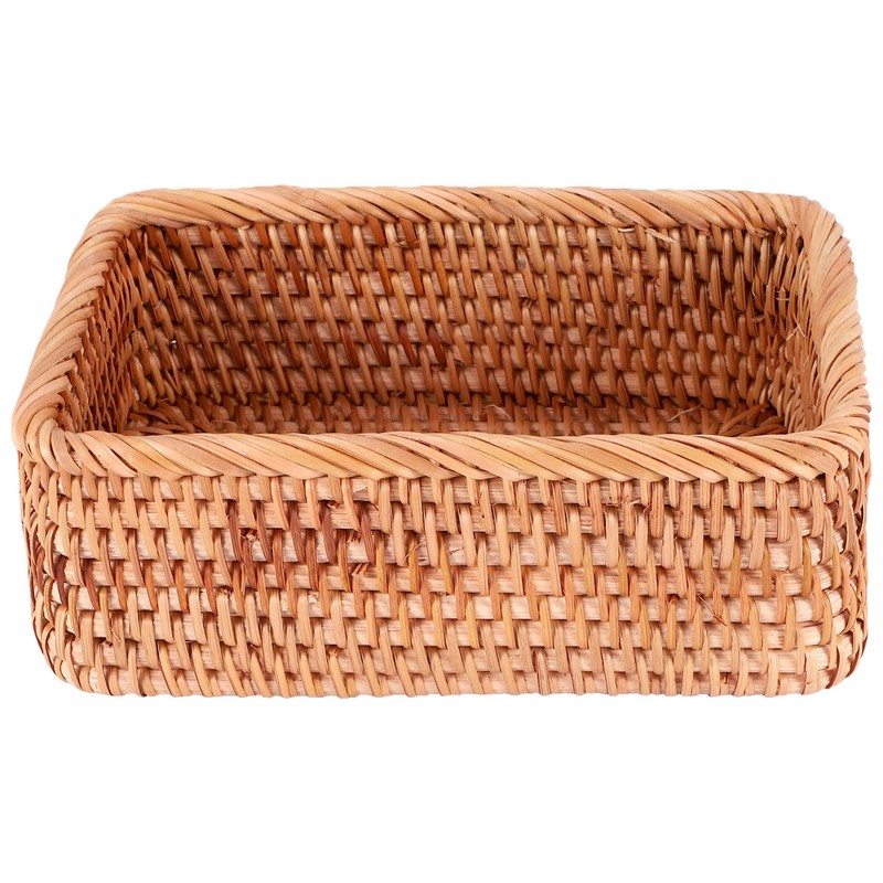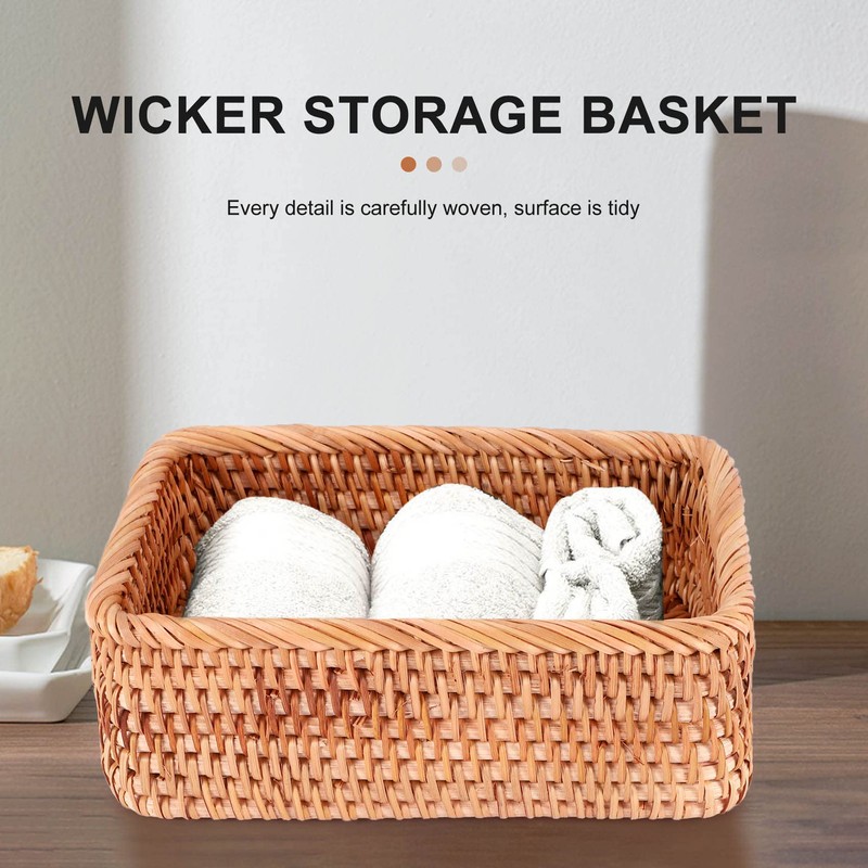 Hopbucan Hand Woven Rectangular Rattan Wicker Basket Tea Bread Picnic Cosmetic Storage Box Kitchen Household Tools S