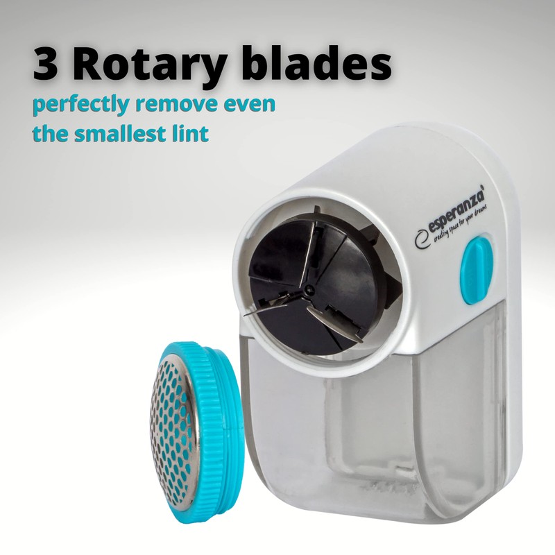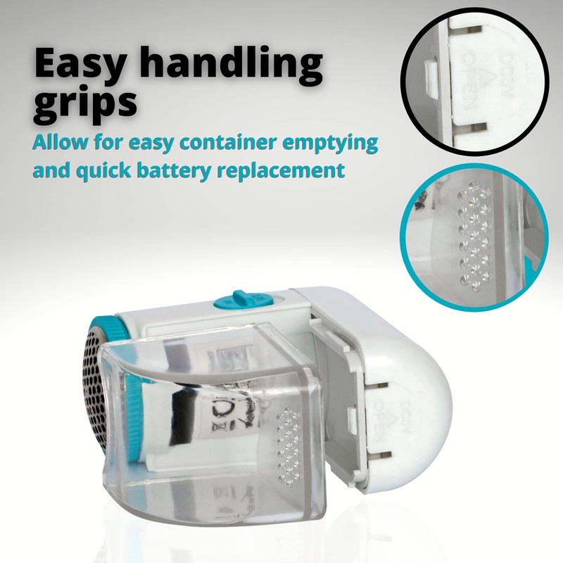 - The ergonomic shape fits perfectly on the hand. A transparent waste bin indicates when it needs to be emptied. The razor removes pilling quickly and effectively.