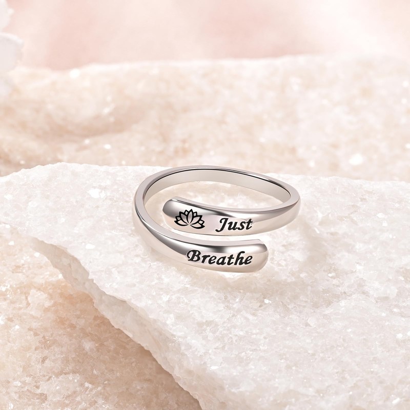 - Design: Just Breathe ring is a solace for the soul. It whispers softly: Amidst the hustle and bustle, don't forget to grant yourself a moment of serenity, reminding you that no matter how chaotic the world may be, a deep breath can reveal the tranquility and love that lies deep within your heart