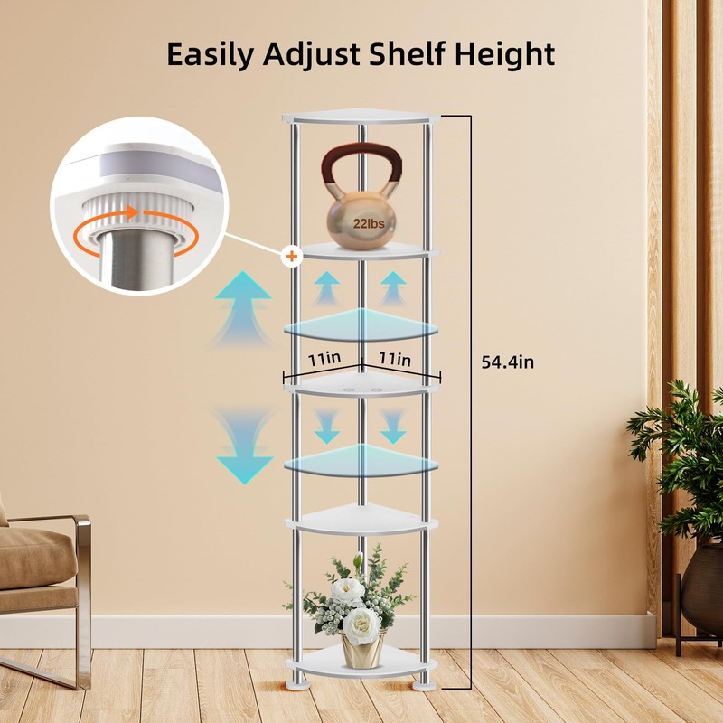 - Height Adjustable & Stable: Our corner floor lamp is flexible and changeable, and the height of each floor can be adjusted freely, allowing you to easily place items of different heights. Simply unscrew the cap clockwise, no tools required. Comes with a furniture anchor to effectively prevent accidental tipping. Suitable for relatives and friends, it is a perfect choice for birthday, Christmas, Valentine's Day, Mother's Day