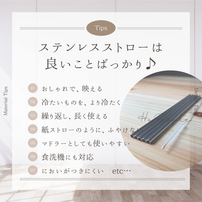 Set of 5 stainless steel straws Includes a dedicated cleaning brush These straws are almost the same size as Starbucks straws. Not only can it be used as a my straw, but also a stirrer. Stainless steel straws make your cold drinks even more cool and delicious. Since it can be used repeatedly, it does not contain waste, and is ecologically friendly. My Straw, not your first time?