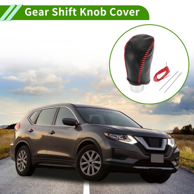 HOPESPANNER Gear Shift Knob Cover for Nissan Rogue 2017-2020 Anti-Slip Pebbled Black Red Stick Shifting Handle Protector Faux Leather 1 Pc