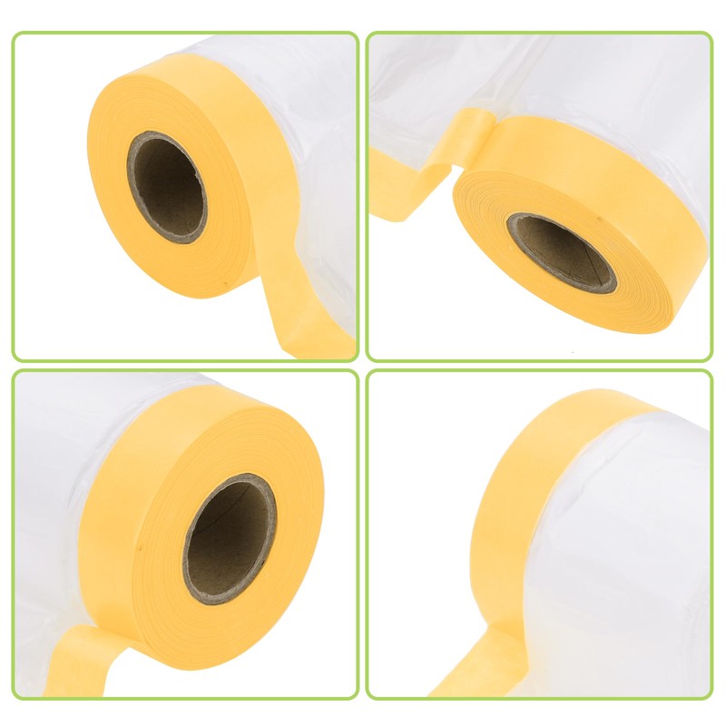 - Product Characteristics:Our waterproof masking tape on the Plastic Paint Tape and Drape is made of strong adhesive washi tape, the waterproof masking tape used in this pre-taped protective film can be removed cleanly and easily up to 30 days, leaving very clear lines, without sticky residue.