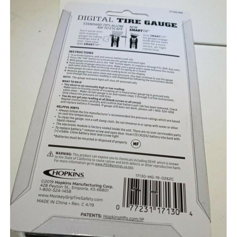 Hopkins 17130MG Monkey Grip Smart Tip Digital Tire Gauge 0 to 150 PSI, New