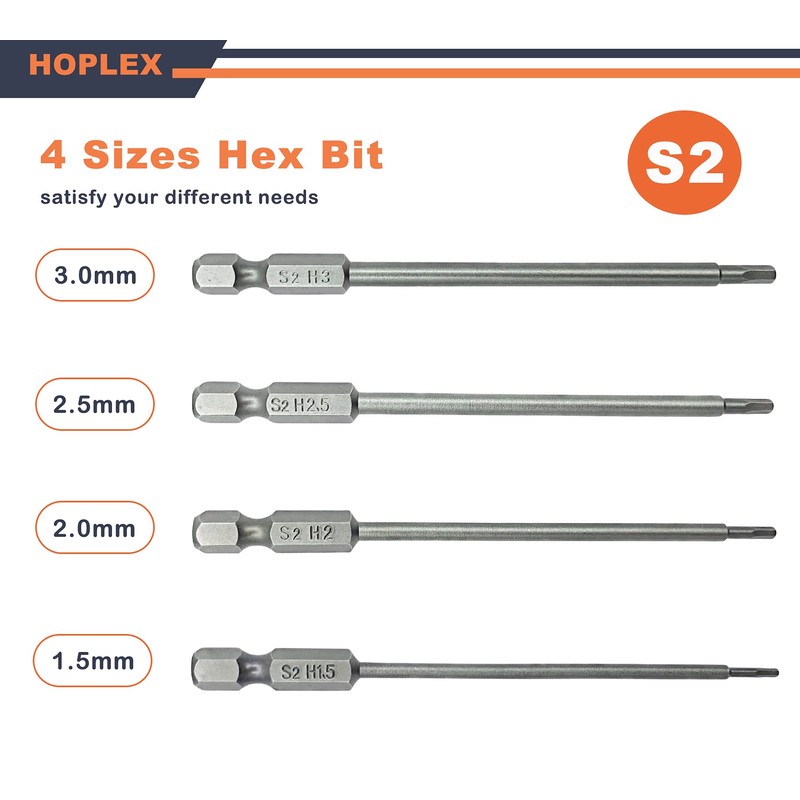 HOPLEX RC 六角ビットセット 六角ヘッド アレンレンチ ドリルビットセット 1.5 2.0 2.5 3.0mm S2スチールのアップグレード 1/4インチ 六角シャンク 長さ3.9インチ ドライバービット 電動ネジ/電動ドリルRC修理作業