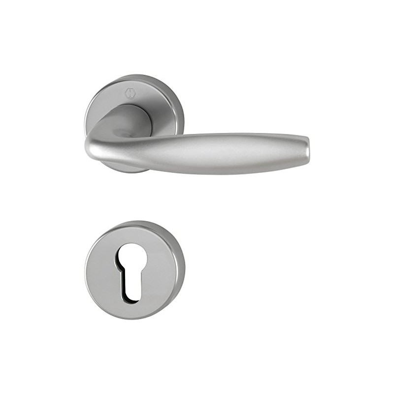 Hoppe New York handle set with rosettes PZ profile cylinder, aluminium stainless steel effect, 3369882