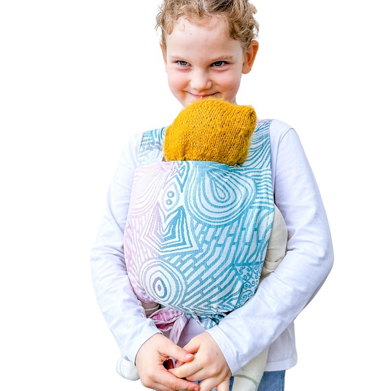 - Doll carrier made from 100% organic cotton; inspired by the Hoppediz baby carriers