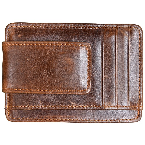 HOPSOOKEN Money Clip RFID Front Pocket Wallet Men Leather Slim Minimalist Wallet (Brown with ID Window (Crazy Hourse Leather))