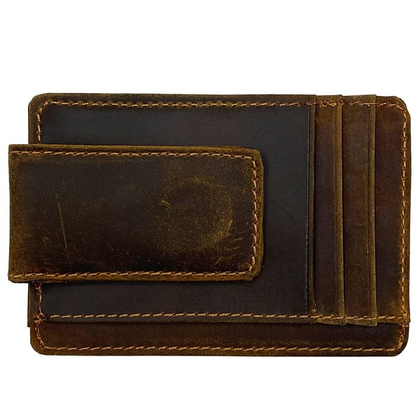 HOPSOOKEN Money Clip RFID Front Pocket Wallet Men Leather Slim Minimalist Wallet, Crazy Horse Deep Brown, Small