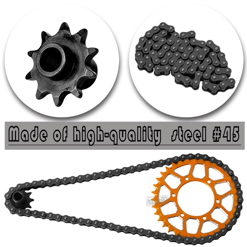 - 【Easy to Install】Designed for simple installation, it is very suitable for replacing old parts or damaged parts, improving the overall performance and durability of your remote-controlled motorcycle. ❤【Package Includes】: 36T Gears Aluminum Rear Hub chain sprocket x 1,10T Steel Front Chain Sprocket x 1, roller chain x 1.