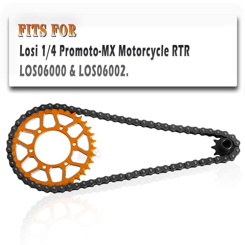 hopsupRC Upgrades Parts Aluminum 7075 Rear Hub Chain Sprocket 36T Gears&Manganese Steel Roller Chain&10T Steel Front Sprocket for LOSI 1/4 Promoto-MX Motorcycle RTR FXR(los06000)(los06002),Orange