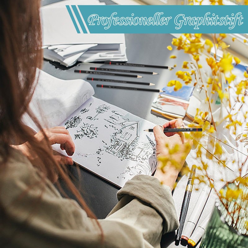 - Professional graphite quality: the drawing pen uses a graphite lead, break-resistant leads thanks to triple pressing; uniform line guidance on paper without fraying; easily erasable for precise corrections