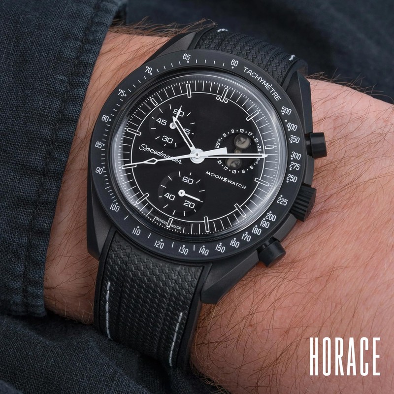 HORACE Omega x Swatch MoonSwatch compatible rubber watch strap 20mm (Black - White stitching)