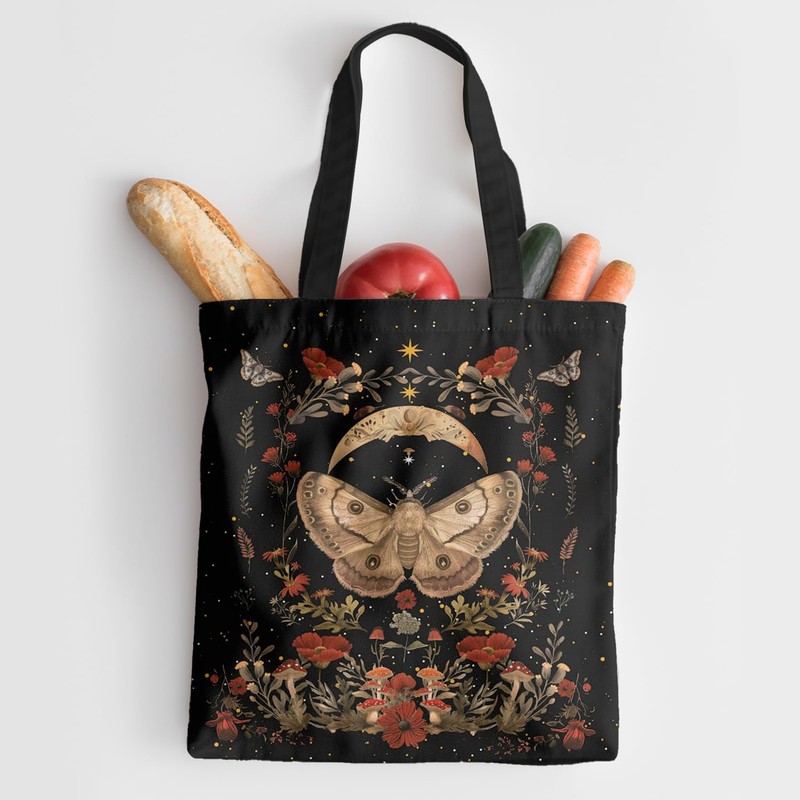 Horadaily Canvas Tote Bag, Divination Style Reusable Shoulder Tote Bag for Women Lady Casual Vacation, Shopping, Work, Gym
