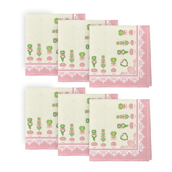 Horaldaily Valentine Cloth Napkins 18 x 18 Inch, Pink White Lace Party Dinner Decoration Washable Napkins Set of 6