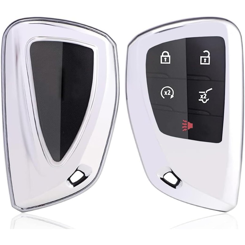 Horande Soft TPU Protector Key Fob Cover Case fit for 2021 2022 2023 2024 2025 GMC Sierra Yukon Chevy Silverado Suburban Tahoe Keyless Entry Key Fob (Silver)