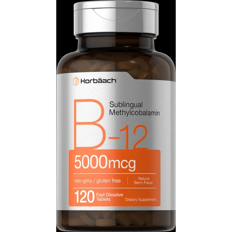 Horbaach B12 Sublingual Methylcobalamin | 5000mcg | 120 Dissolvable Tablets | by Horbaach