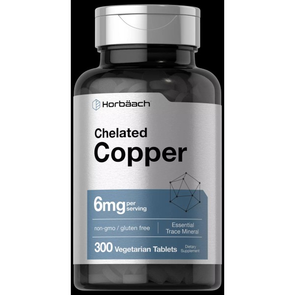 Horbäach Chelated Copper | 6 mg | 300 Tablets | Vegetarian, Non-GMO | by Horbaach