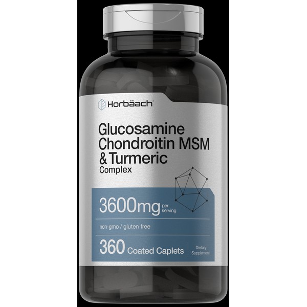 Horbäach Glucosamine Chondroitin Turmeric MSM | 3600 mg | 360 Caplets | by Horbaach