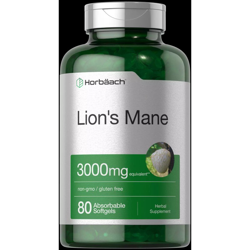 Horbäach Lions Mane Mushroom 3000mg | 80 Softgels | Non-GMO & Gluten Free | by Horbaach