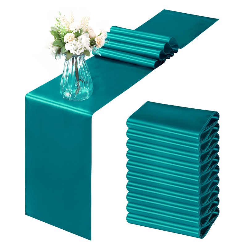 - ❤Practical Party Decoration: Package includes 12 pack of teal table runners, enough quantity for your need. Measured about 12" x 108", the satin table runners is long enough to fit rectangle and round tables that can seat 8 to 16 people. Thes silky and lustrous table runners make your parties elegant and top-end.
